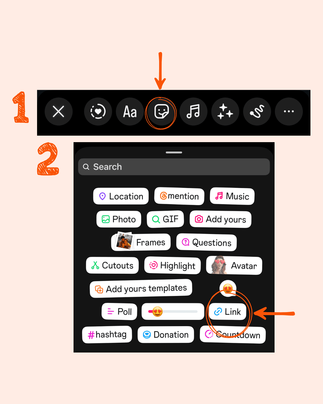 - Click the smiley face sticker → Link