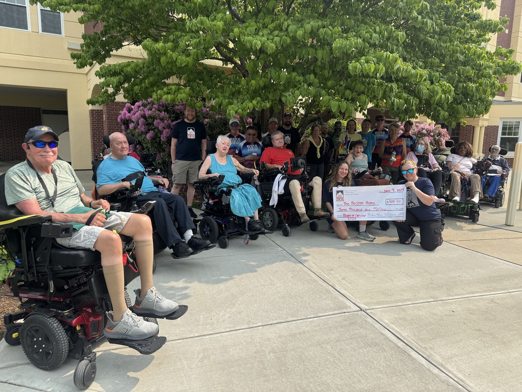 We also had a lovely visit with the residents of the Boston Home, a residential center for people living with MS and other neurological conditions. We presented a check for our $3000 donation thanks to the fundraising efforts of the Boston to Cape Cod team.